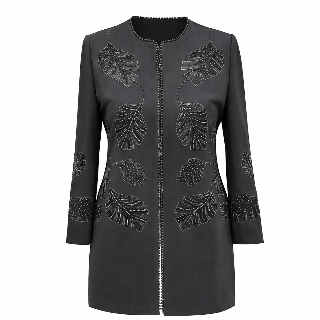 کت کرپ زنانه گلدوزی یقه گرد برگی سایز ۴۴ تا ۵۴