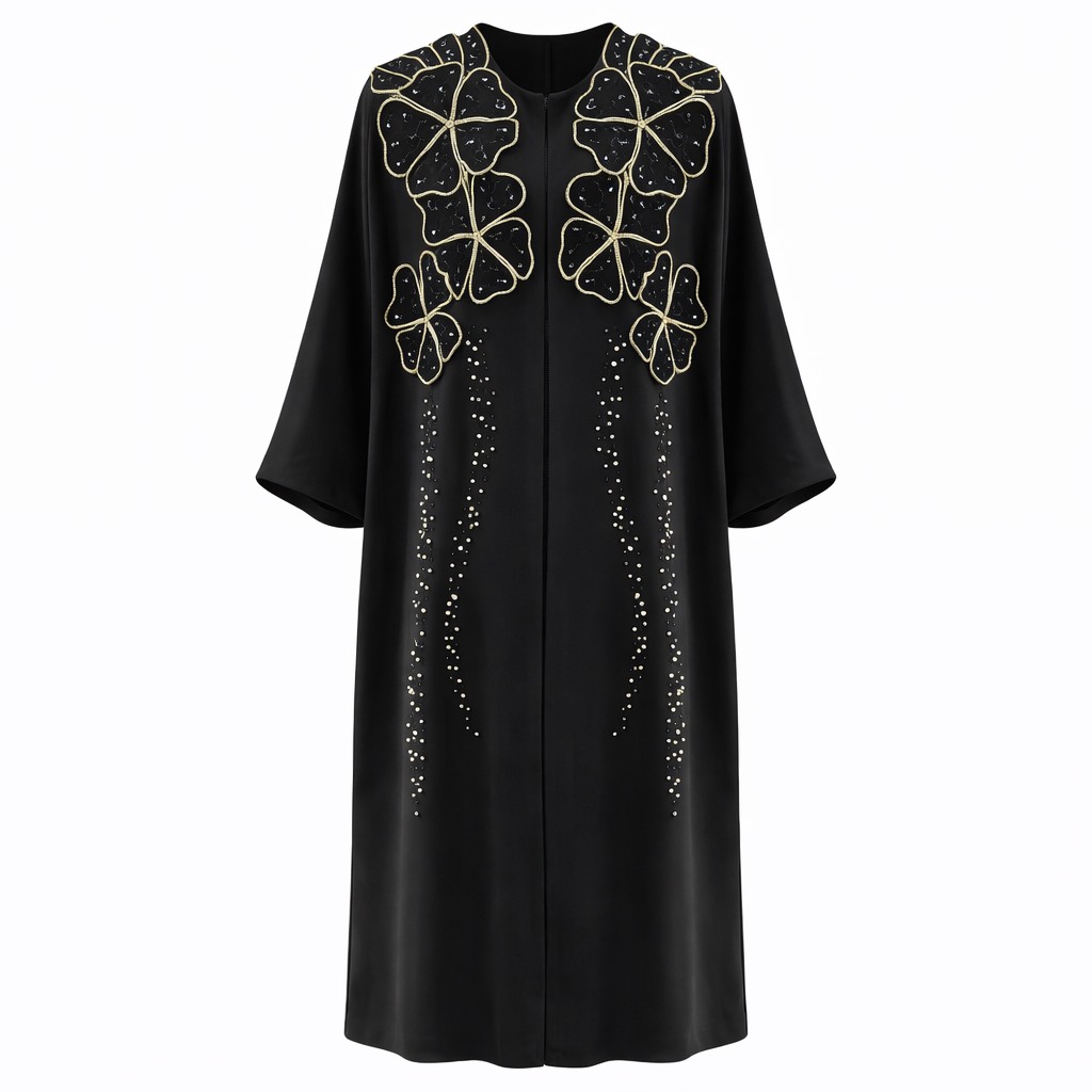 مانتو عبایی جواهر دوزی گلبرگ پیش فری سایز