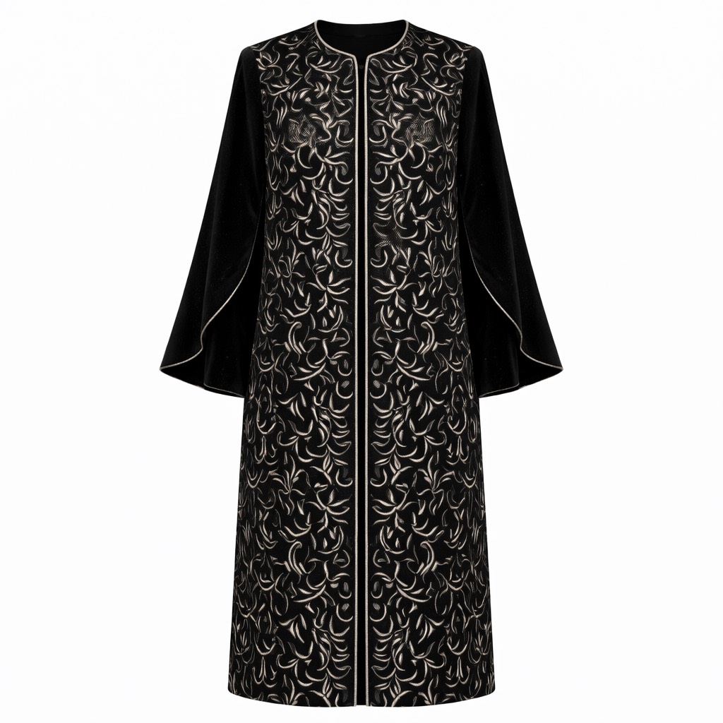مانتو عبایی سوزندوزی آستین هلال فری سایز 36 تا 46
