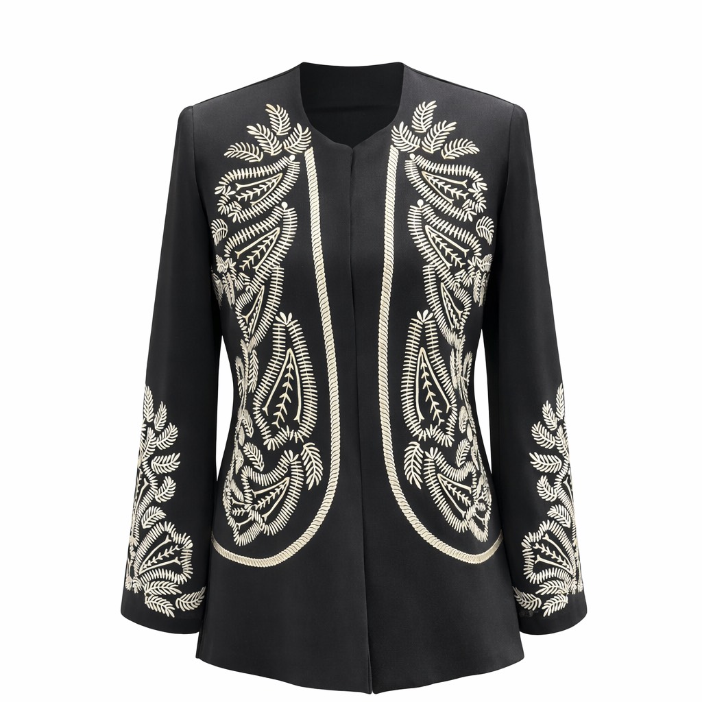 کت زنانه ژاکارد مدل ماریا تیکه دوزی و هویه کاری 40 تا 50